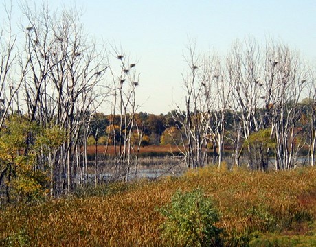 There are no trails here, but the site is a favorite among birders. Almond Marsh is home to a great blue heron rookery and rare sedges. On a good day, an astute observer may sight dozens of species of waterfowl and raptors, including the Cooper's hawk and peregrine falcon.