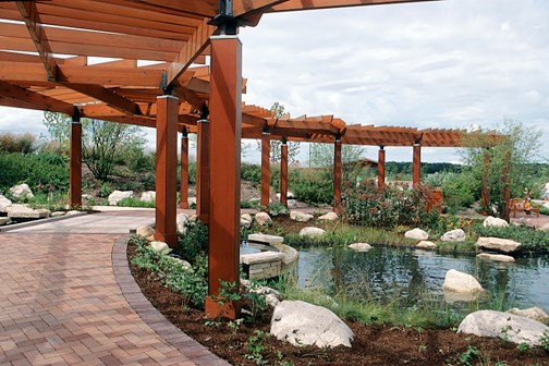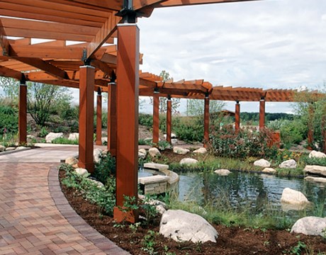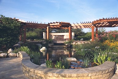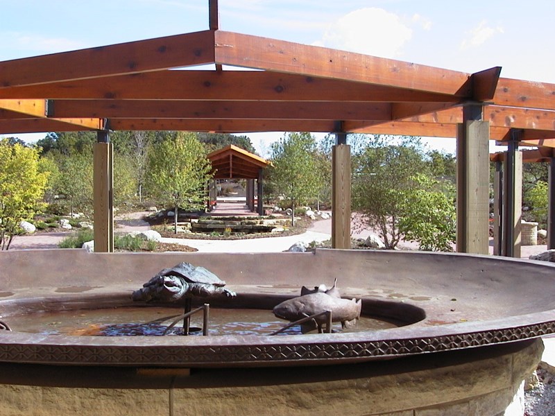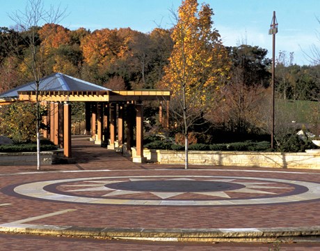 The picturesque Millennia Plaza and surrounding amphitheater, fountain and native garden make an ideal outdoor setting for a variety of special programs, events and celebrations. The native garden showcases flowers and foliage, a sculptured fountain, wooden pergola and gazebo, wood and wrought iron benches and winding red brick walkways.
