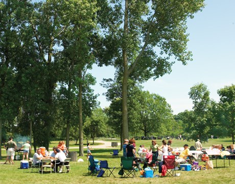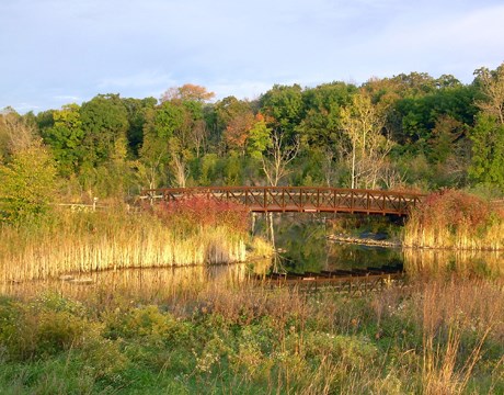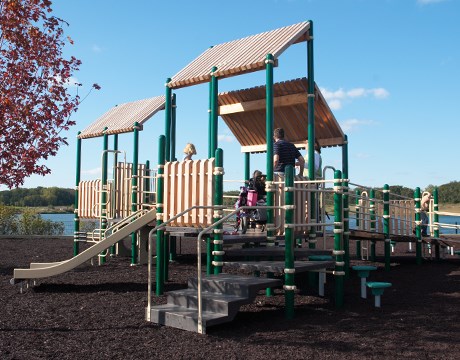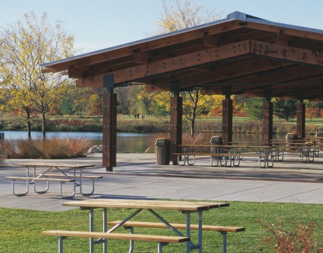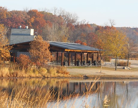 Situated on the preserve's scenic North Bay, this striking lakeside pavilion and adjacent open area are perfect for an outdoor company picnic, wedding, family reunion or other event. The pavilion offers a stone fireplace, picnic tables, drinking water, electricity, parking, toilets, trail access, fishing pier, playfield and sand volleyball court.