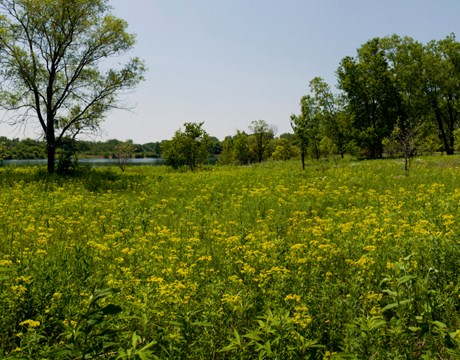 A short trail provides walk-in access from Milwaukee Avenue and connects the parking area with the fishing pier. A 1-mile mowed grass trail encircles the lake and is ideal for hiking and nature observation, and cross-country skiing. Please keep dogs leashed and on trails at all times, and pick up after them. Learn about our Off-Leash Dog Areas (permit required).