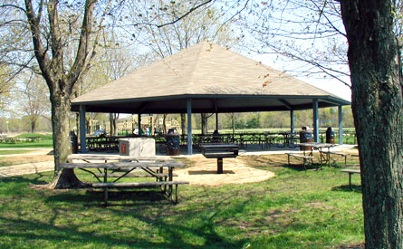 Two large barbeque grills can accommodate large cookouts, and an extra-large playfield next to the shelter is perfect for a soccer or softball game, or a large tent to provide more covered space.