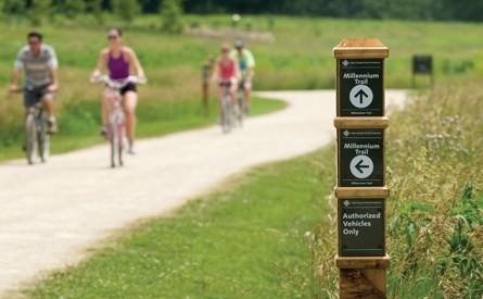 The planned 41-mile Millennium Trail is a vital trail corridor designed to connect central, western and northern Lake County. When tied with neighboring Lake County trails, such as the Fort Hill Trail, North Shore Path, Des Plaines River Trail, and the McClory Trail, it becomes part of a spectacular system linking residential areas to parks, forest preserves, schools, and business districts.