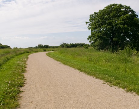 The trail surface alternates from gravel to paved along various completed sections of the trail.